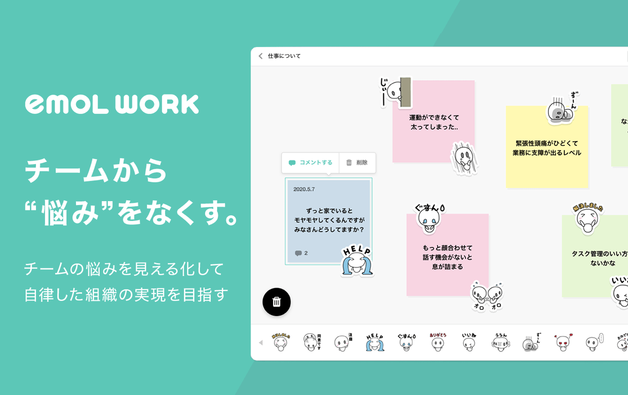 従業員向けメンタルケアの「emol work」が正式ローンチ——チャットボットで悩みを見える化、チームで匿名共有する仕組みにピボット