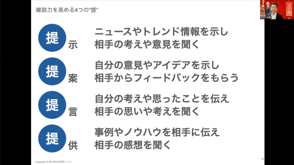 トップセールスが考える「商談に『雑談』は必要か?」 相手の満足度を高めるために、準備するべき4つの「提」 | ログミーBusiness