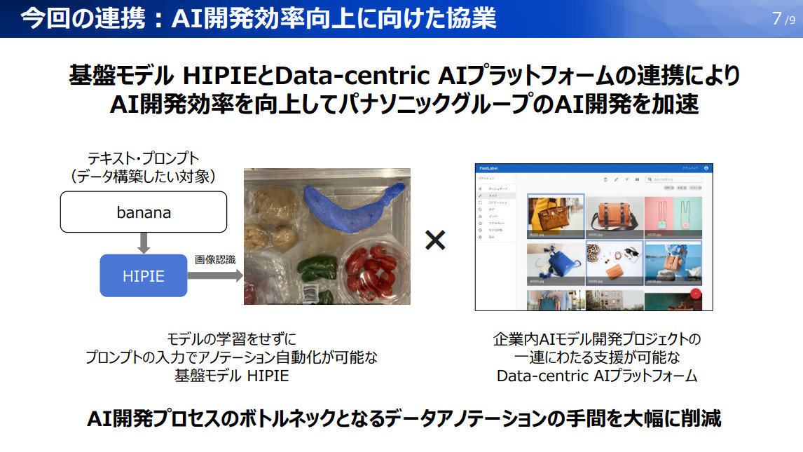 パナソニックHDとFastLabelは、パナソニックグループのAI開発の効率化を目的とし協業を行う。AIプロセス全体の効率化とともに、パナソニックHDが開発するマルチモーダル基盤モデル「HIPIE」とFastLabelのData-Centr...