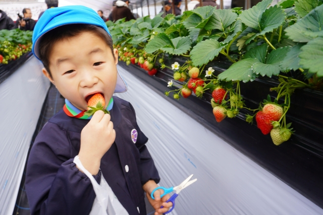 ・「7個食べた」 大きなイチゴ、口いっぱいに 奈良県明日香村の農園で1月11日からイチゴ狩り